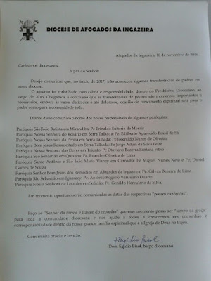 As alterações anunciadas foram informadas em nota oficial no site da Diocese de Afogados da Ingazeira.