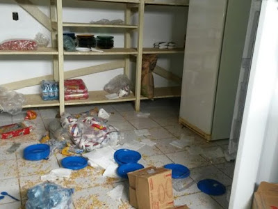 ao estabelecimento quebrando as vidraças e que espalhou alguns alimentos