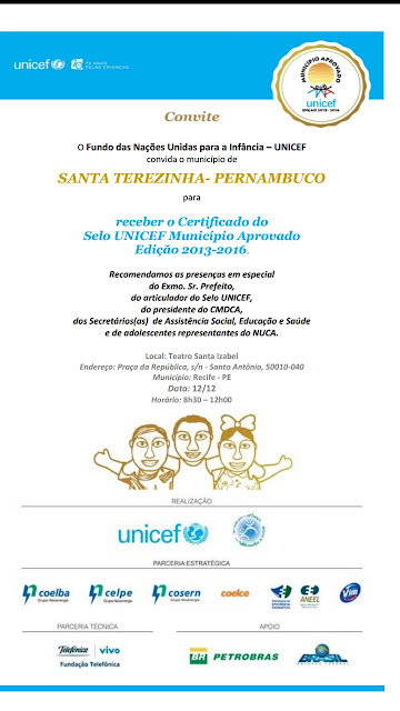Santa Terezinha foi contemplada mais uma vez com o selo UNICEF município aprovado 2013-2016 por