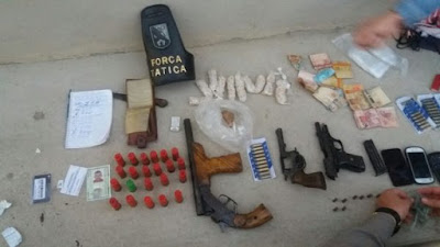 polícia encontrou quatro revólveres, uma pistola ponto quarenta, uma 765