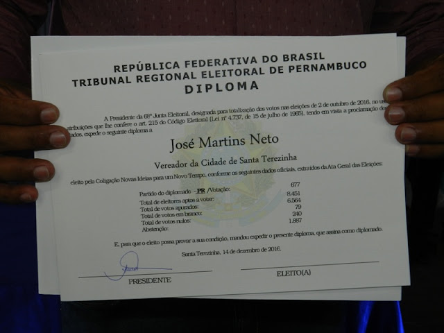 Diplomados: Prefeito, vice, vereadores e suplentes de Santa Terezinha. Imagens!'