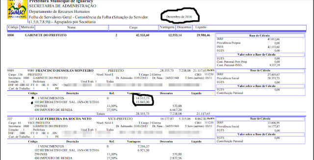 salário, o prefeito recebeu no mês de dezembro alem do seu salário o