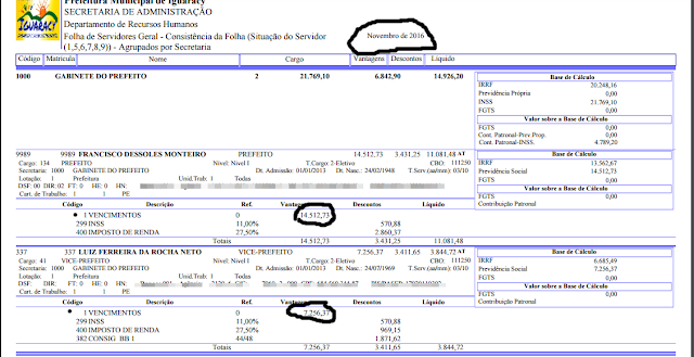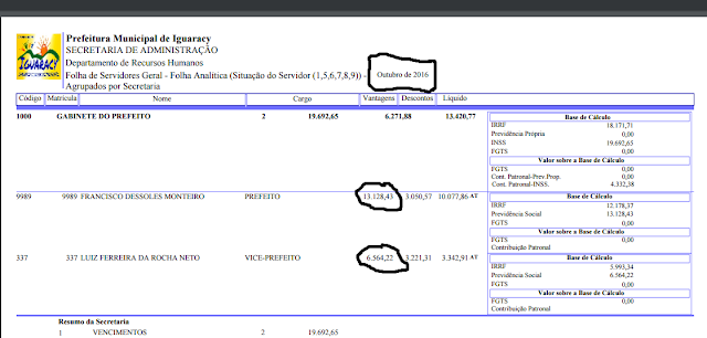 seu salário R$6.921,50 totalizando R$14.177,87, e os secretários