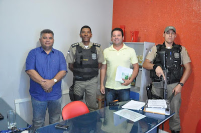 o comandante do destacamento Andre Guimarães da PM. Na ocasião, o prefeito de