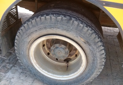 nos faróis, pneus lisos, bancos danificados e partes traseiras dos