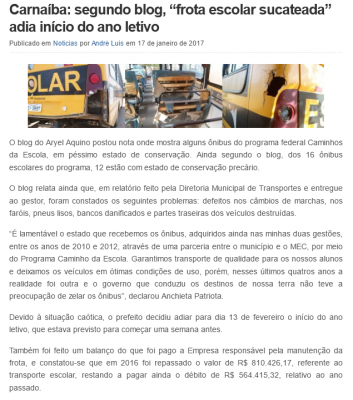 terça-feira (17), o blog reproduziu matéria veiculada no blog do Aryel