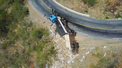 carreta tombada na tarde da última quarta-feira em Teixeira, na rodovia