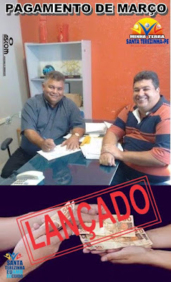 A Prefeitura de Santa Terezinha  divulgou nesta quinta-feira 30′ o calendário de pagamento dos servidores municipais. De acordo com o secretário de Finanças, Charleston Guimarães, vai ser mantida a liberação da folha nos três últimos dias de cada mês.  A folha de pagamento do mês de Março foi liberada ontem, ou seja, já está depositada aguardando os Bancos repassarem para as contas dos funcionários já nesta sexta-feira 31′. Receberão os funcionários da Secretaria de Saúde, servidores da Educação, aposentados e pensionistas. De acordo com a ASCOM do município os Programas serão os primeiros a ter os salários disponibilizados. Em seguida, e até o dia 10 subsequente de cada mês, os contratados e fornecedores.