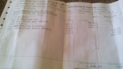 (Hum mil quatrocentos e oito reais), porém em seu contra cheque desconta