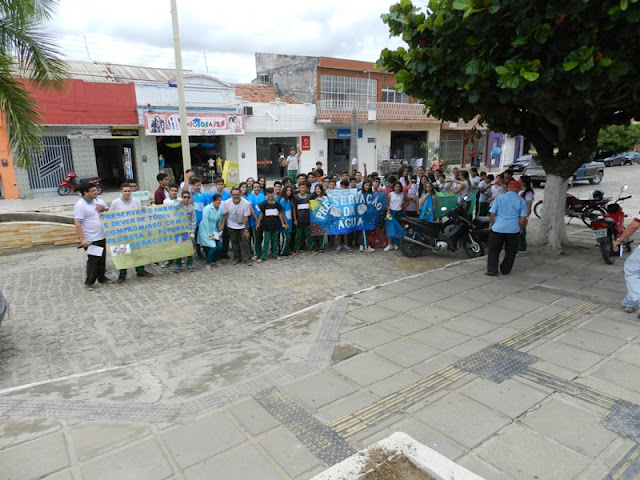 O Colégio Nova Conquista de Santa Terezinha realizou com seus alunos na manhã desta terça-feira 11′ uma mobilização no centro da cidade, fazendo apresentação enfrente ao Banco do Brasil tratando do uso racional da água, já que não é novidade que o mundo corre sério risco de sofrer com a escassez total de água doce e o consumo irresponsável deste recurso, que é finito, se apresenta como um dos principais fatores que justificam a crise vivida hoje.