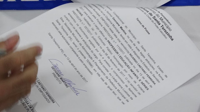 Na manhã desta quinta-feira 13′ houve a nomeação e posse dos professores aprovado em concurso público realizado pela gestão