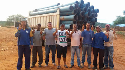 O vereador Neguinho de Danda, ao lado do Secretário de Transportes Joinha mostraram a vinda dos canos que serão utilizados na interligação da Adutora do Pajeú a Santa Terezinha. Vários canos já estão na Vila do Tigre para o começo do processo.