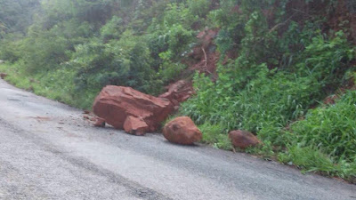 quanto as pedras caídas de um morro na PE 365, pondo em risco as vidas de