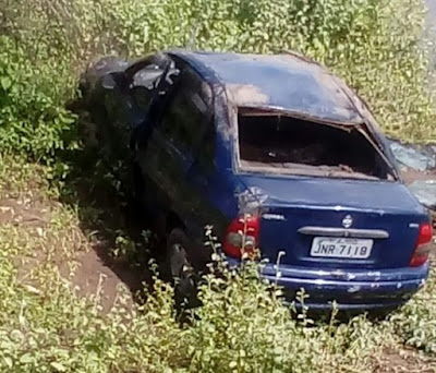 capotou e caiu em um aterro.