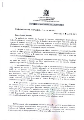 Tribunal de Contas do Estado de Pernambuco vai realizar auditoria na Prefeitura de São José do Egito referente ao exercício de 2016.