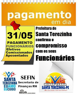 de Santa Terezinha prioriza o pagamento dos servidores; Efetivos,
