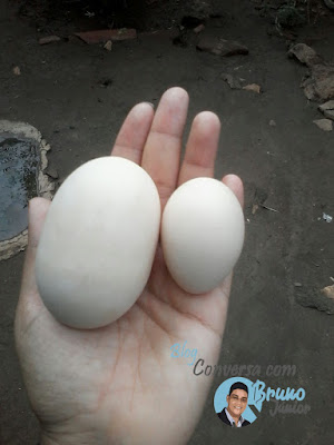 de duas gemas, mas nunca ovos numa proporção como esta. Vamos aguardar