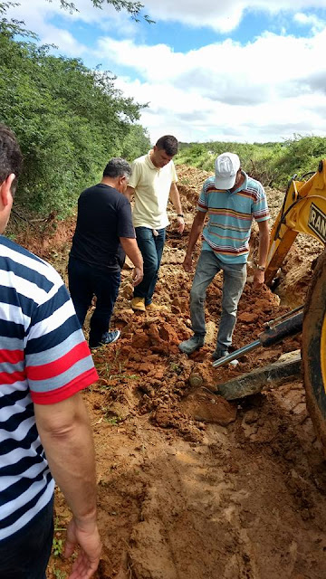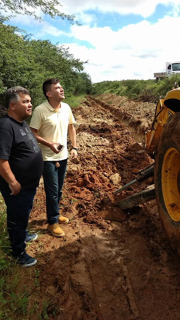 engenheiro Pedro Guedes, os Secretários Municipais Paulo Pedreiro, Fabinho de Chico França e a Diretora do Hospital local Tereza, estiveram visitando a obra da adutora que beneficiará