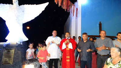 microfone agradeceu também a Estátua do Divino Espírito Santo e chamou a