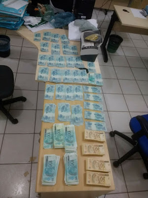 aproximadamente R$ 116.700,00 em cédulas falsas. O encontro se deu em um