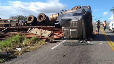 Teixeira o motorista perdeu o controle e tombou. Foi informado ainda que o