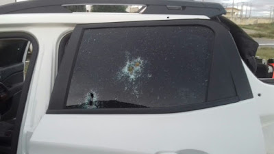 que atingiram o carro na lataria, furou pneus e balearam o motorista na