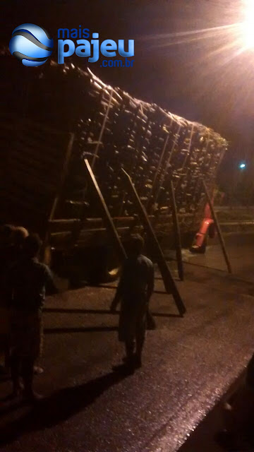 informações de populares o caminhão da foto, carregado de lenha, teria