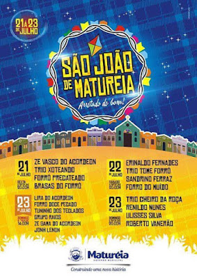 programação oficial do São João fora de época de Maturéia, no sertão do