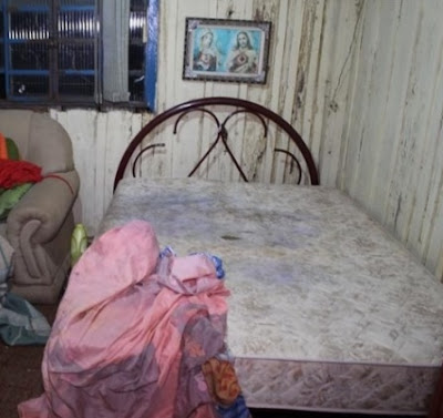 emborcada na cama sem sinais de violência, tendo aparentemente sido