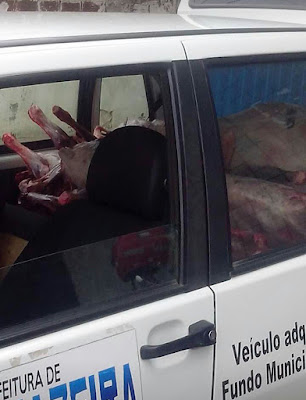 Impactante! Na Ingazeira carro da prefeitura faz transporte irregular de carnes para a merenda escolar.