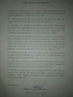 1 – Diferentemente do que diz a matéria, não houve por parte dos responsáveis pela Casa de Apoio nenhum ato de expulsão.