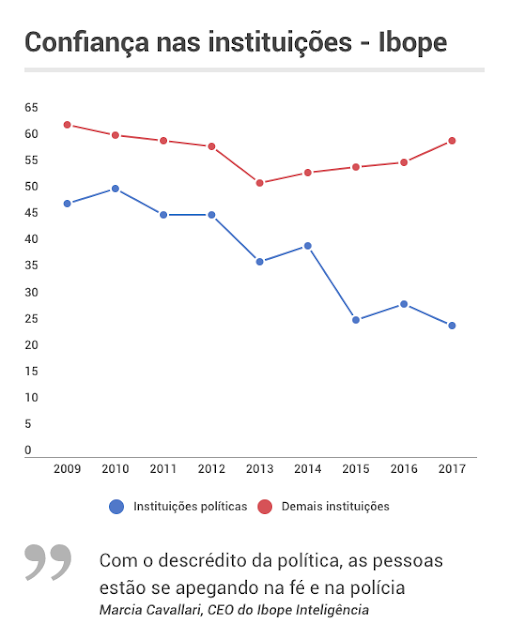 2017, o “gap” de confiança nas instituições que envolvem políticos – em
