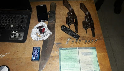 apreendeu facão, dois revólveres calibre 38, Oito munições, uma