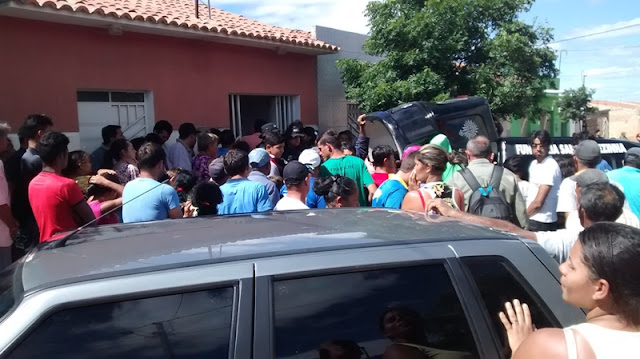| Momento da retirada do corpo da jovem do local. |