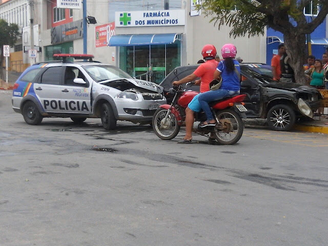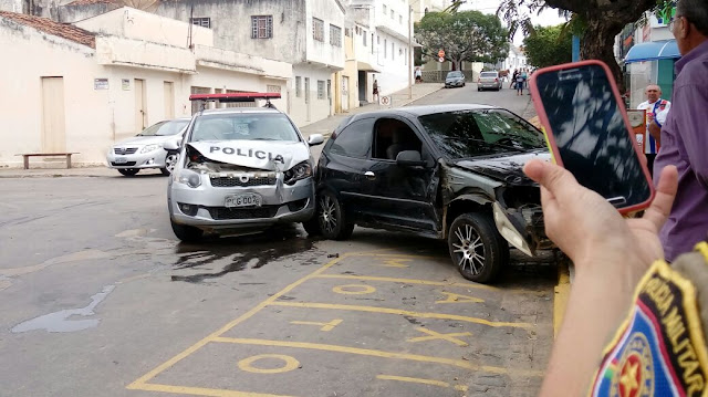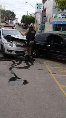 Segundo populares, a viatura da polícia seguia sentido antigo fórum e o Celta sentido antigo hospital quando houve a colisão.
