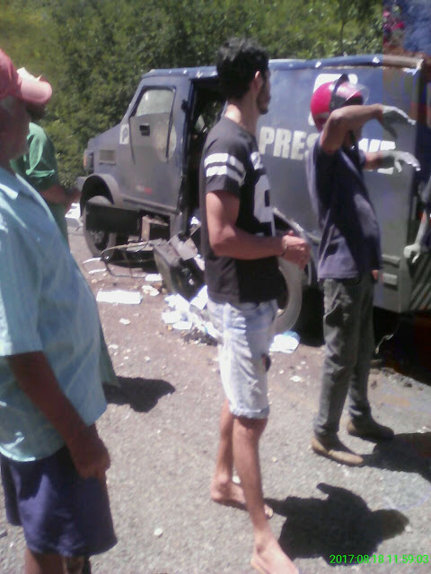Criminosos trocam tiros com a PM e explodem carro-forte na tarde desta sexta-feira entre Serra Talhada e Santa Cruz da Baixa Verde; um dos criminosos foi baleado e morreu.