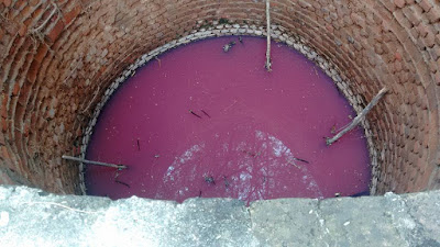 com água de cor rosa, o que lhe chamou a atenção e preocupação.