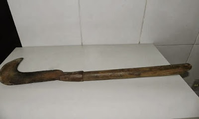 desentender, o agricultor armou-se com uma foice e desferiu um golpe