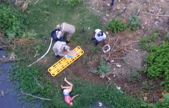 O Corpo de Bombeiros resgatou uma jovem de 22 anos que se jogou da