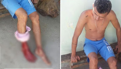 anos de idade, foi atingido com um tiro na perna.
