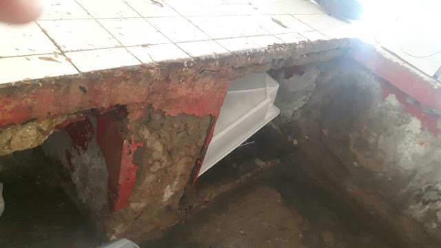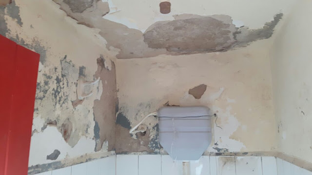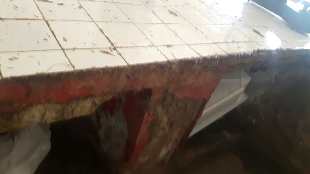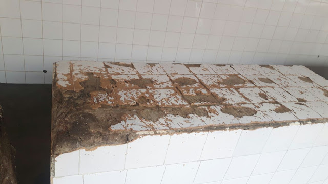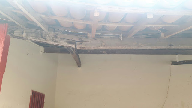 balcões, paredes e cobertura em antigo telhado, estão em estado de