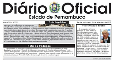 estadual. Dessa vez foi no Diário Oficial do Estado de Pernambuco onde,