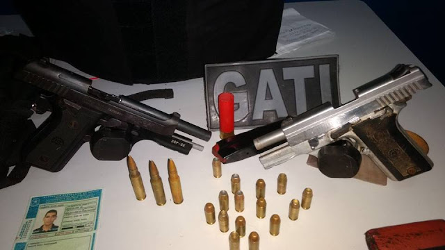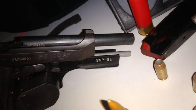 No local da primeira investida, foi encontrado duas pistolas de calibre