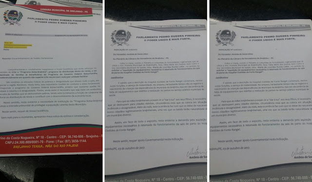 O vereador Antonio de Souza, conhecido por Neném da Foveira fez importantes indicações da sessão da Câmara Legislativa Pedro Guedes de Brejinho na noite desta quarta-feira 04.10. A primeira foi solicitando ao executivo municipal a aquisição de equipamentos para a retomada do funcionamento da sala de partos do Hospital Clotildes da Fonte Rangel. De acordo com o vereador, faz tempo que não se registra nascimentos nas dependências do hospital, parte por falta de equipamentos que obriga as gestantes brejinhenses a se deslocarem para outros municípios, em situação desagradável e incomodas.