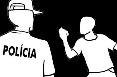os policiais e ficar agressivo. Foi preciso o uso de algemas para