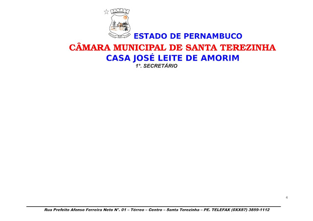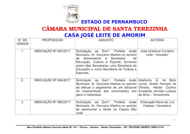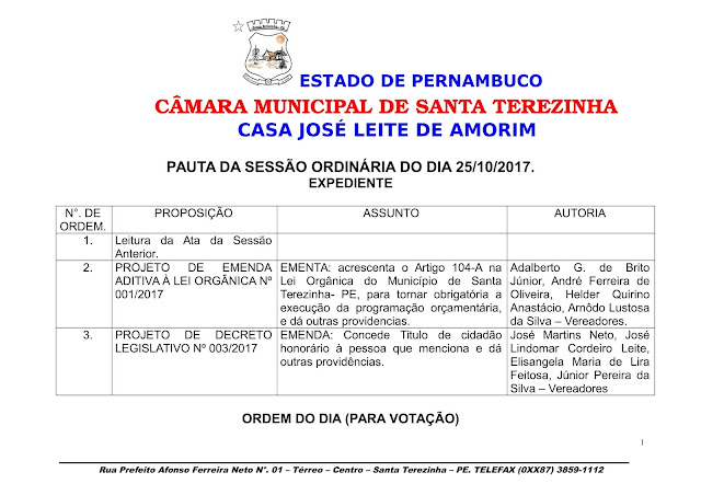 A Poder Legislativo de Santa Terezinha tem Sessão Ordinária na noite desta quarta-feira 25.10 onde por meio de