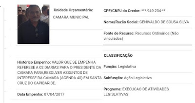 Ingazeira, Genivaldo de Souza Silva, o Geno, PSB, recebeu diárias para