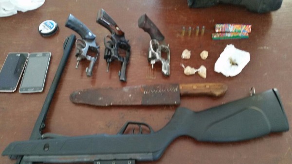 01 revólver cal 32, com a numeração raspada;