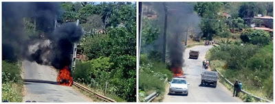 tarde deste domingo (12), um veículo ficou em chamas na altura do Sítio