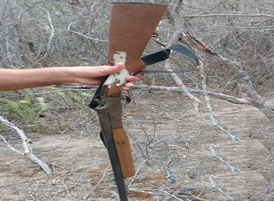 ao avistarem o policiamento jogaram uma espingarda artesanal/retrocarga